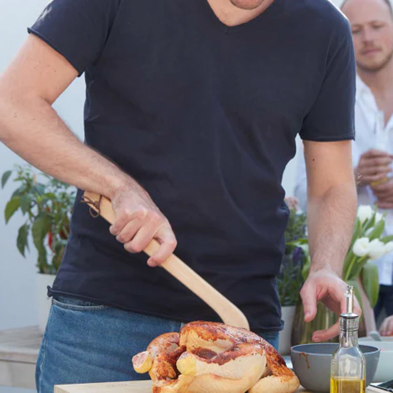 De Barbecook kwast uit hout 47 cm is een extra lange houten marinadekwast met stevige haren – ideaal voor het eenvoudig aanbrengen van saus of olie op vlees, vis en groenten tijdens het grillen.