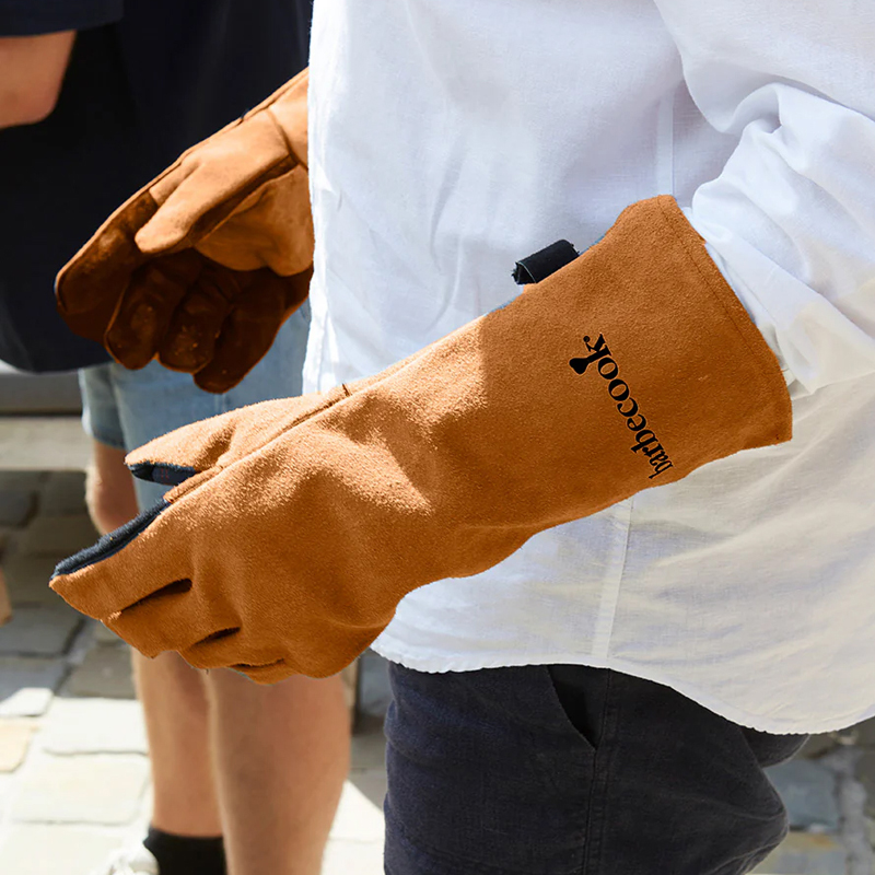 De Barbecook set van 2 zachtlederen handschoenen combineert comfort en bescherming. Gemaakt van een mix van katoen en zacht leer, bieden deze handschoenen een goede grip en hittebestendigheid tot 200°C.