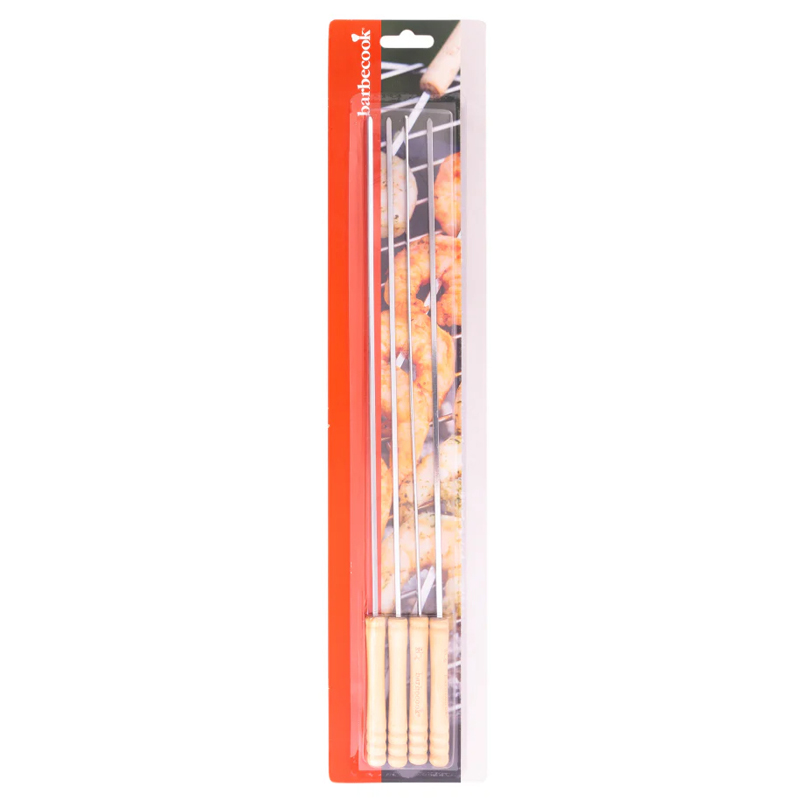 De Barbecook set van 4 spiezen uit RVS en hout biedt kwaliteit en gebruiksgemak voor de barbecuefanaten. De stevige roestvrijstalen spiesen zijn voorzien van houten handvatten die zorgen voor een comfortabele grip en een mooie uitstraling.