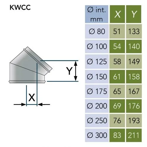 - Uitvoering: Bocht 45 º, dubbelwandig