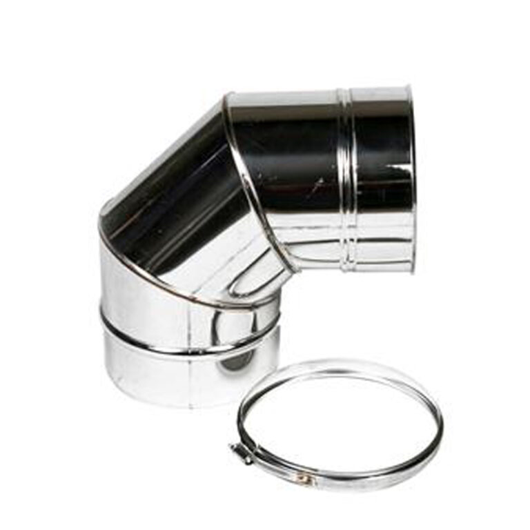 Een 90° bocht is geschikt voor situaties waar een haakse verbinding nodig is, bijvoorbeeld bij het aansluiten van een kachel op een horizontale of verticale pijp.