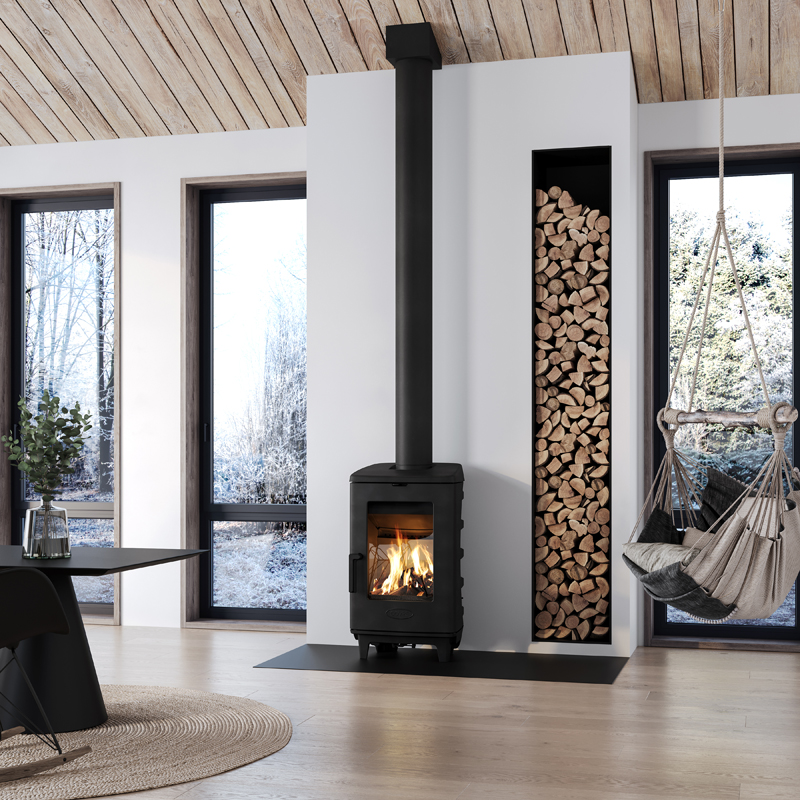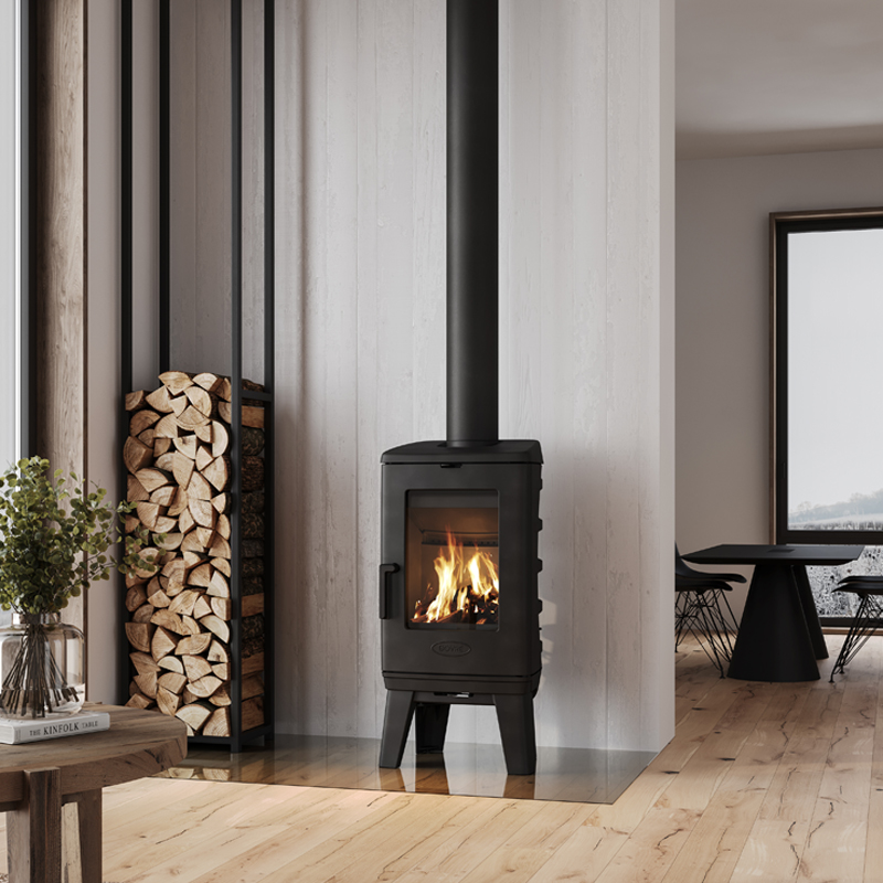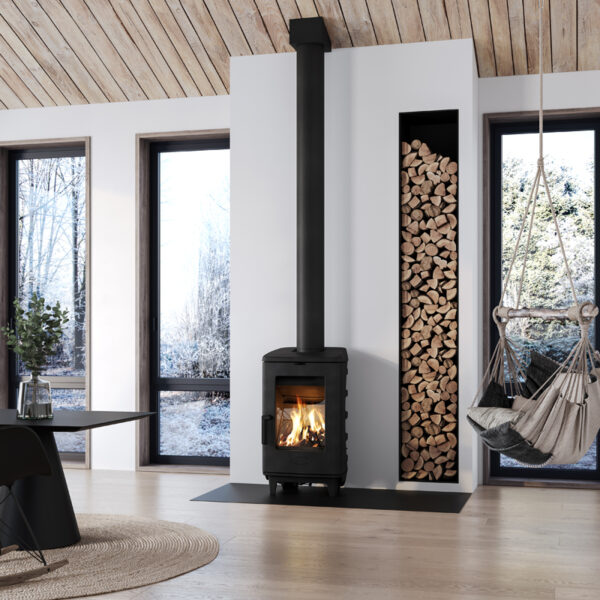 De BRUT 200 is een robuuste houtkachel met een stoer en industrieel ontwerp. Het hoge glasraam biedt een panoramisch zicht op het vuur, terwijl de flexibele installatieopties, zoals korte of lange poten, het design eigentijds en veelzijdig maken. Met een rendement van 78% geniet u van efficiënte en duurzame verwarming.