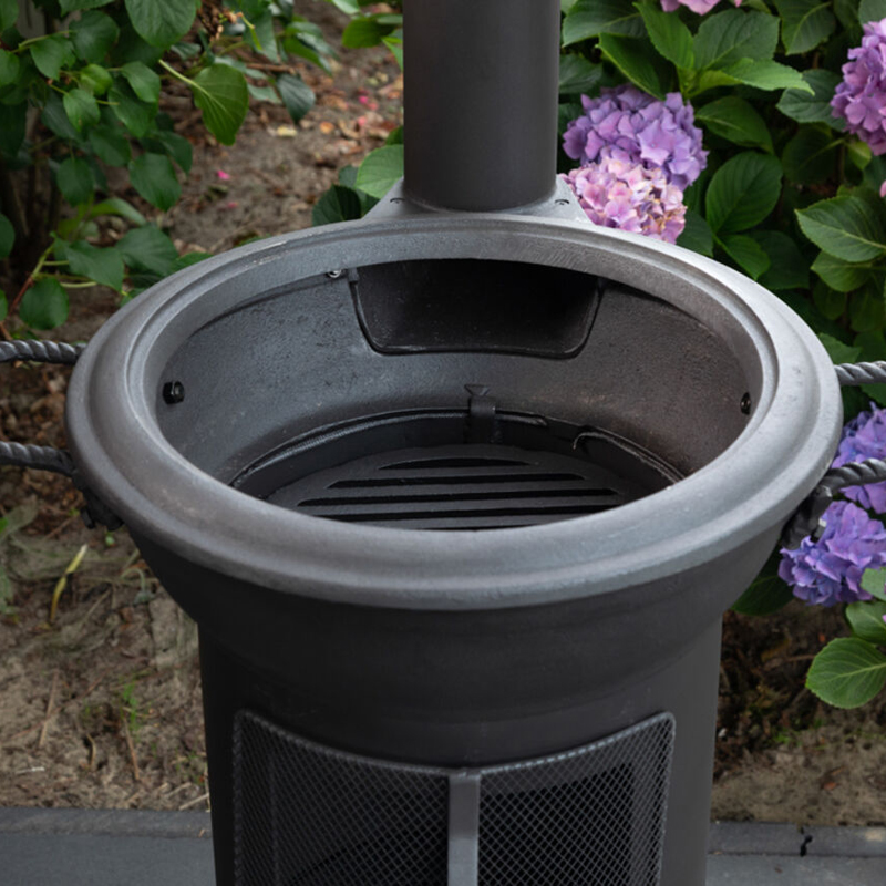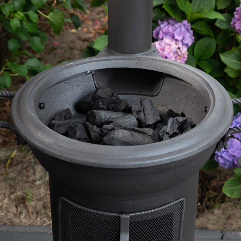 Met zijn klassieke zwarte afwerking en een kacheldiameter van 42 cm is dit toestel een echte blikvanger in iedere buitenruimte. Het gietijzer zorgt voor een uitstekende warmteverdeling en -behoud, waardoor u zowel efficiënt verwarmt als comfortabel kookt. Perfect voor avonden in de tuin waarbij sfeer, functionaliteit en duurzaamheid samenkomen.