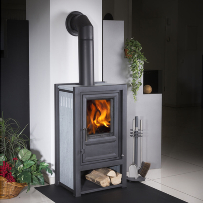 - Stijlvol design: De zwart gepolijste natuurstenen bekleding en gietijzeren constructie zorgen voor een verfijnde uitstraling in uw woonkamer