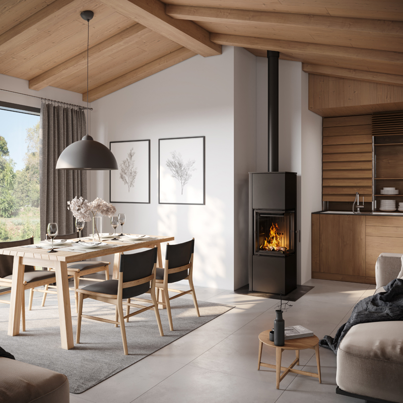 - Veelzijdig vlammenspel: De Torsted biedt zicht op het vuur vanuit meerdere zijden, ideaal voor plaatsing in de hoek van uw kamer