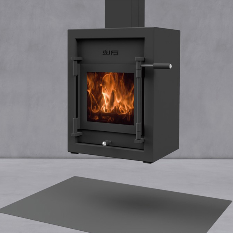• Stijlvol hangend design: Moderne houtkachel met een strak, zwevend uiterlijk