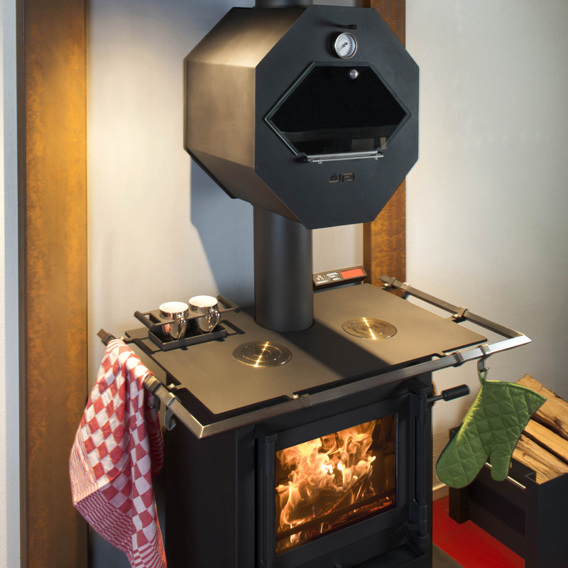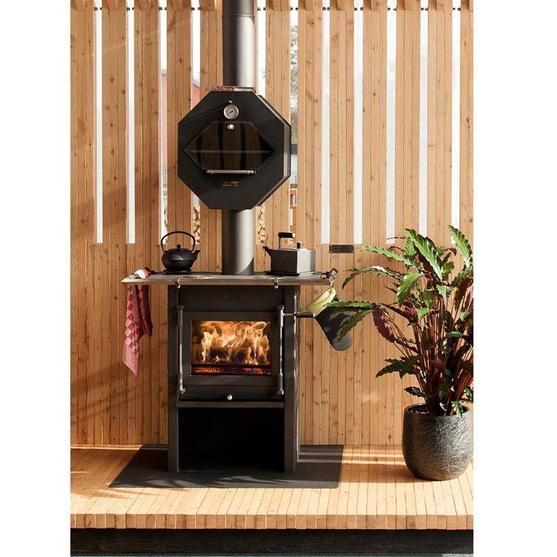 De JAcobus 9 Kook is de ideale keuze voor wie op een authentieke manier wil koken op houtvuur. Met drie kookpitten en een instelbaar vermogen van 4 tot 10 kW, verwarmt deze kachel niet alleen je woning, maar biedt hij ook de mogelijkheid om in de keuken te koken, waardoor hij perfect is voor woonkeukens, serres en veranda’s. Het innovatieve verbrandingssysteem zorgt voor een optimale warmteverdeling en lage uitstoot van schadelijke stoffen.
