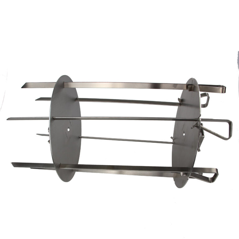 De spiesenset is speciaal ontworpen voor gebruik in kamado’s van 15 tot 16 inch en sluit perfect aan op de rotisseriehouder. De compacte maar stevige constructie zorgt voor stabiel draaien, terwijl de spiezen eenvoudig te verwijderen en schoon te maken zijn. Perfect voor wie graag experimenteert met gevarieerde gerechten op het spit.