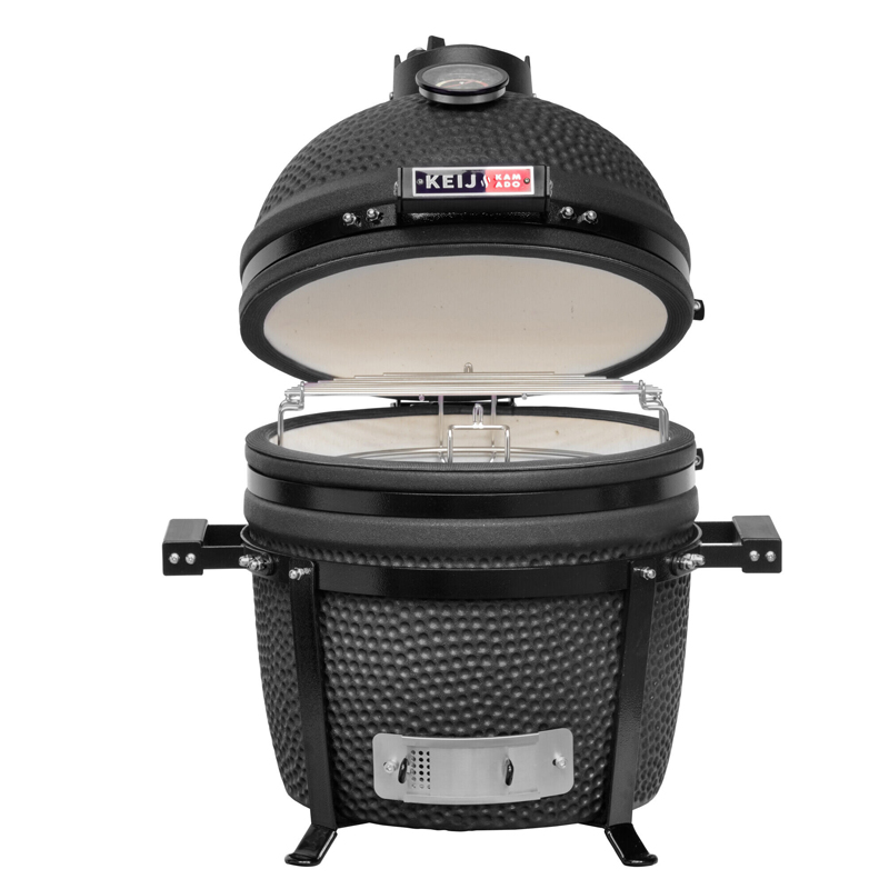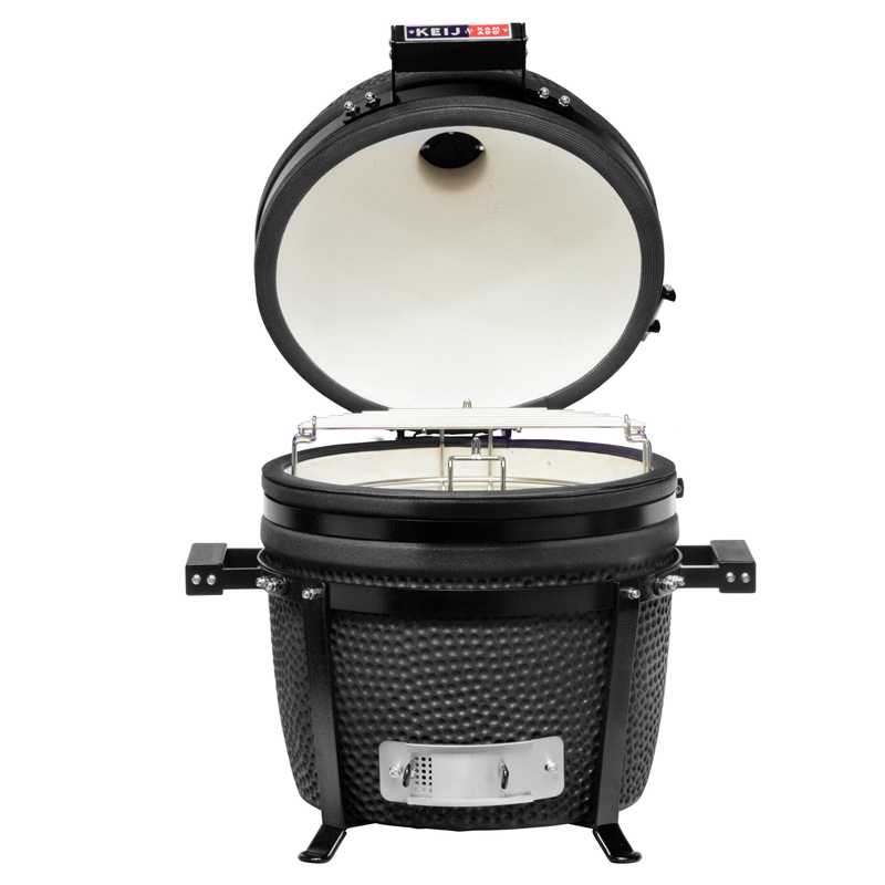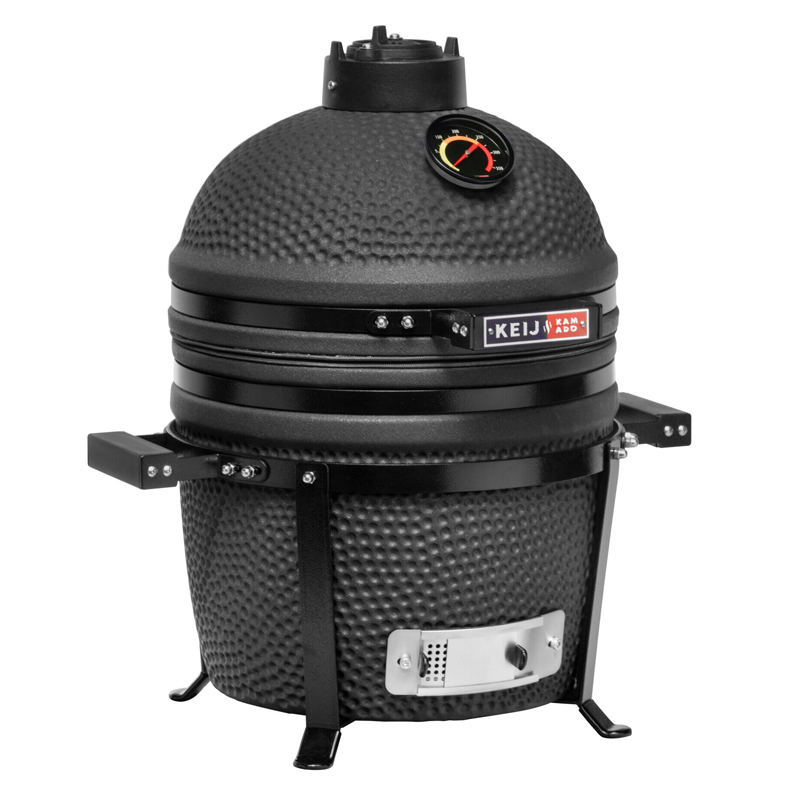 De Keij Kamado Keij Legend Compact Black combineert kracht en precisie in een handzaam formaat. Deze compacte kamado is vervaardigd uit duurzaam cordieriet keramiek en afgewerkt in een stijlvolle zwarte kleur. Met een grilloppervlak van Ø 33 cm is deze barbecue perfect voor wie efficiënt en smaakvol wil koken, zelfs in kleinere buitenruimtes.