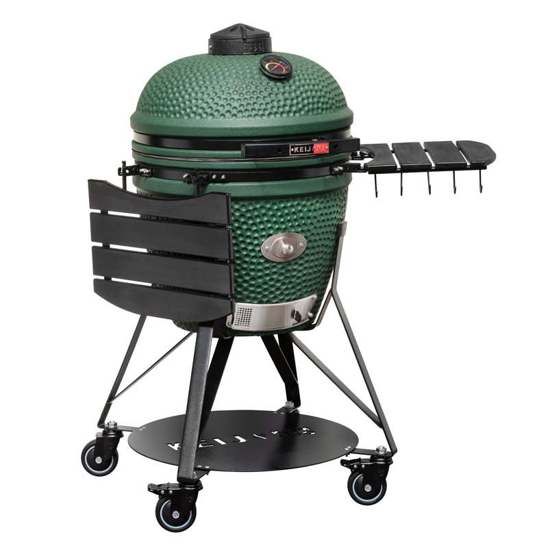 De Keij Kamado Keij Legend Large Green is een krachtige kamado barbecue met een opvallend groene afwerking. Met een grilloppervlak van Ø 47 cm biedt deze barbecue ruimte voor het bereiden van complete maaltijden voor grotere gezelschappen. Het duurzame cordieriet keramiek en de hoogwaardige afwerking zorgen voor uitstekende prestaties en een lange levensduur – ideaal voor wie barbecueën serieus neemt.