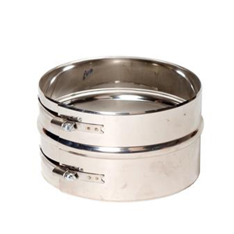 De Klemband breed Ø150 mm – Enkelwandig RVS wordt gebruikt om rookkanalen stevig aan elkaar te bevestigen. De bredere uitvoering zorgt voor extra stevigheid en een dichte verbinding.