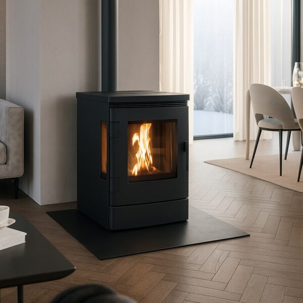 - Ruimtebesparend formaat: Slechts 28 cm diep, waardoor de kachel ideaal is voor compacte ruimtes