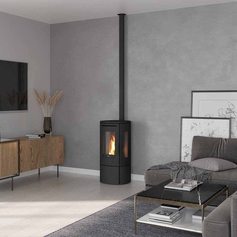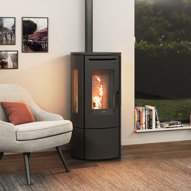 De Fenna petite is een compacte pelletkachel met een robuust karakter en een moderne uitstraling. Dankzij het driedubbele glasvenster heeft u vanuit elke hoek zicht op het sfeervolle vuur. Deze kachel is speciaal ontworpen om moeiteloos onder een bestaande schouw geplaatst te worden en is uitgerust met geavanceerde technologieën zoals WiFi-bediening, een relax-functie en automatische reiniging. De Fenna Petite is niet alleen een esthetische aanvulling op uw interieur, maar ook een stille en efficiënte warmtebron.