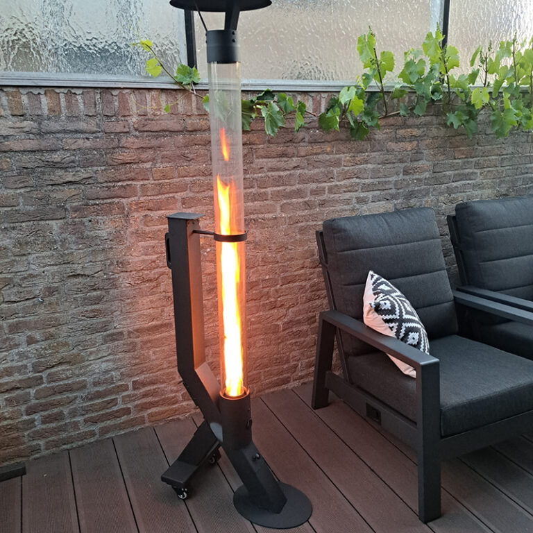 De Pelletheater Modern combineert strak design met duurzame prestaties. Gemaakt van gepoedercoat staal en voorzien van een glazen vlambuis, biedt deze heater niet alleen warmte, maar ook een sfeervol vlammenspel. Dankzij de geïntegreerde wielen en het handvat is het toestel eenvoudig te verplaatsen, ideaal voor flexibel gebruik in de tuin of op het terras.