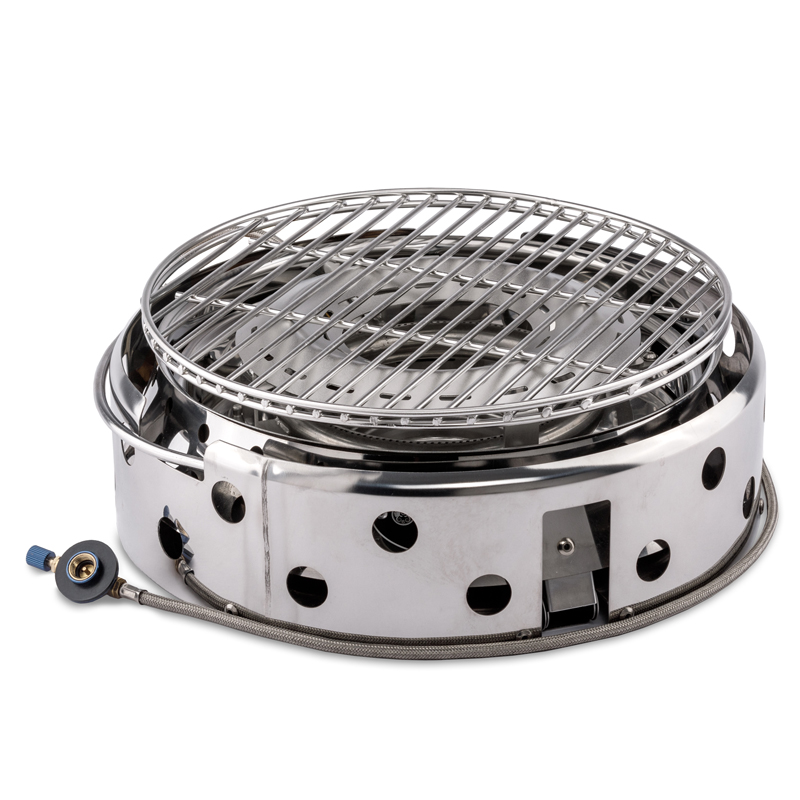 Het hoogwaardige roestvrijstalen grillrooster met opstaande rand biedt een grilloppervlak van ongeveer 600 cm², voldoende ruimte om meerdere gerechten tegelijkertijd te bereiden. Dankzij het lichte gewicht van slechts 3,625 kg en de compacte afmetingen is de Atago Gasgrill eenvoudig mee te nemen op elk avontuur.