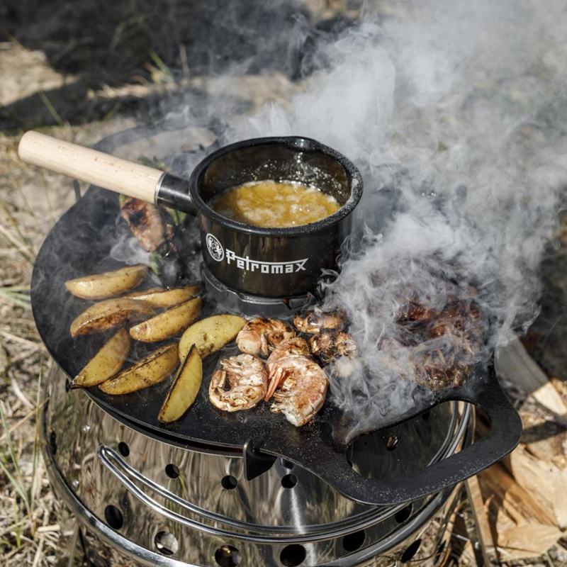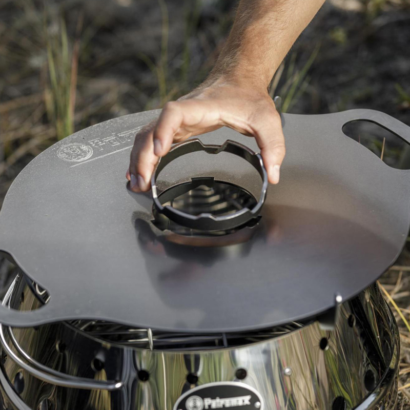 Met het Petromax Atago Opzetstuk vergroot je de functionaliteit van je Atago Grillplaat aanzienlijk. Het stelt je in staat om diverse kooktechnieken toe te passen, van het bereiden van sauzen tot het zetten van koffie, allemaal terwijl je tegelijkertijd aan het grillen bent. Een onmisbaar accessoire voor elke buitenkok die het maximale uit zijn Atago wil halen.