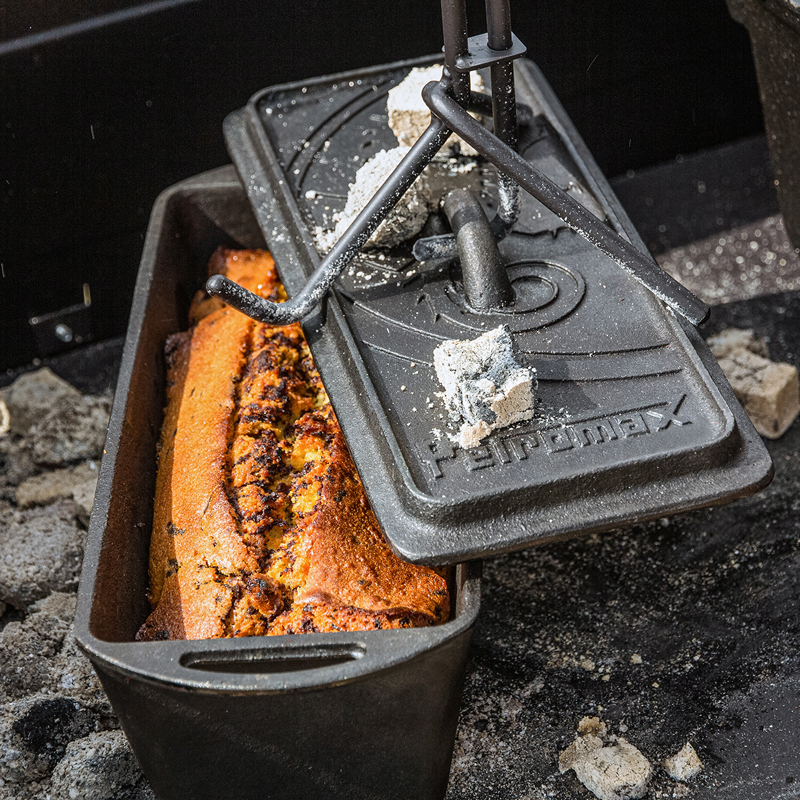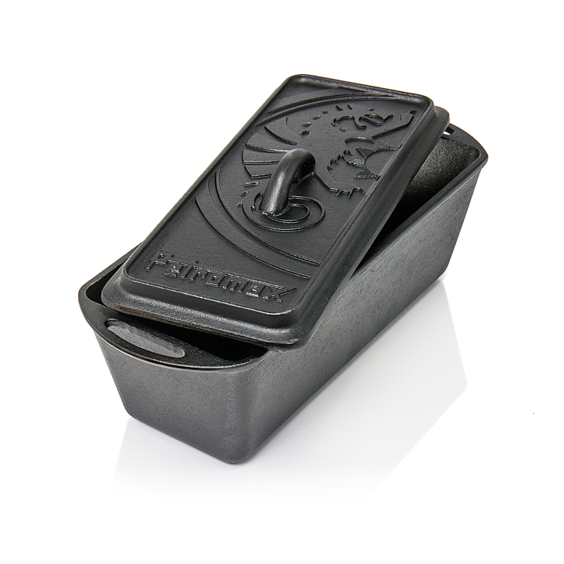 De Petromax Broodpan K4 is een stevige gietijzeren pan voor het bakken van kleine tot middelgrote broden, cakes of hartige ovengerechten. Met een inhoud van 2,8 liter en een rechthoekige vorm biedt deze pan optimale omstandigheden voor gelijkmatige garing en een knapperige korst – zelfs boven open vuur.