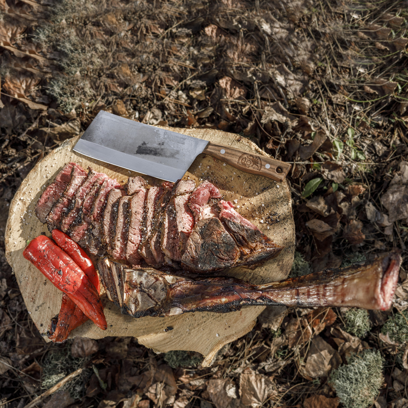 De Petromax Cleaver Knife is een robuust hakmes met een krachtig lemmet van 4 mm dikte, perfect voor het bewerken van vlees en harde ingrediënten in de buitenlucht of keuken. Met zijn brede snede en stabiele grip is het een onmisbaar stuk gereedschap voor elke chef.
