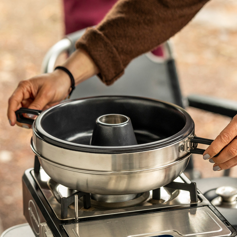 - Compacte ovenfunctie: Geschikt voor gasbranders, kookplaten en kampvuren