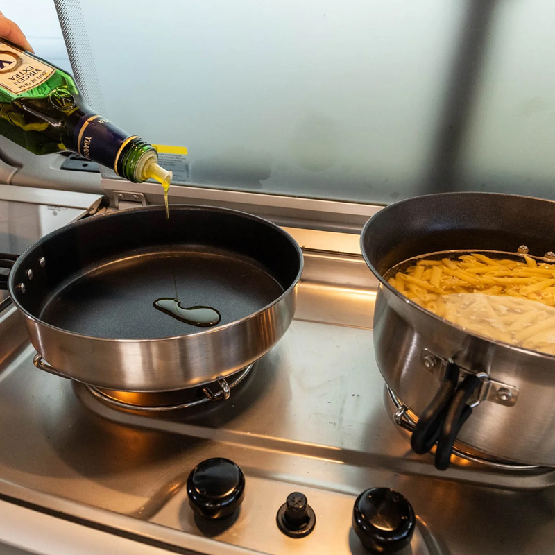 De Petromax Dimego Kookgerei vergroot de functionaliteit van je campingoven en breng je variatie in je buitenkeuken. Alles wat je nodig hebt om te bakken, grillen of braden – stevig, compact en klaar voor elk avontuur. De ideale partner voor iedereen die met smaak en gemak kookt in de natuur.