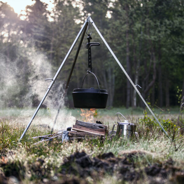 De Petromax Driepoot is de ultieme accessoire voor wie authentiek wil koken boven open vuur. Zijn stabiliteit, draagkracht en instelbaarheid maken hem geschikt voor elk terrein en elke maaltijd. Of je nu een stoofpot maakt in je Dutch Oven of koffie zet boven de vlammen, met deze driepoot heb je maximale controle en comfort bij elk buitenkookavontuur.