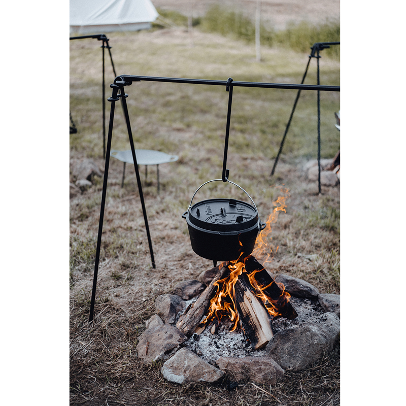 • Drie stabiele pootjes: Ideaal voor gebruik op kolen of in open vuur