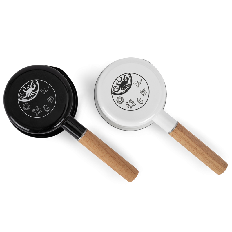 Met een inhoud van 0,5 liter is deze pan geschikt voor het opwarmen van soepen, sauzen of melk. De zwarte afwerking met contrasterende rand zorgt voor een klassieke uitstraling die past bij elke buitenkeuken of retro-interieur.