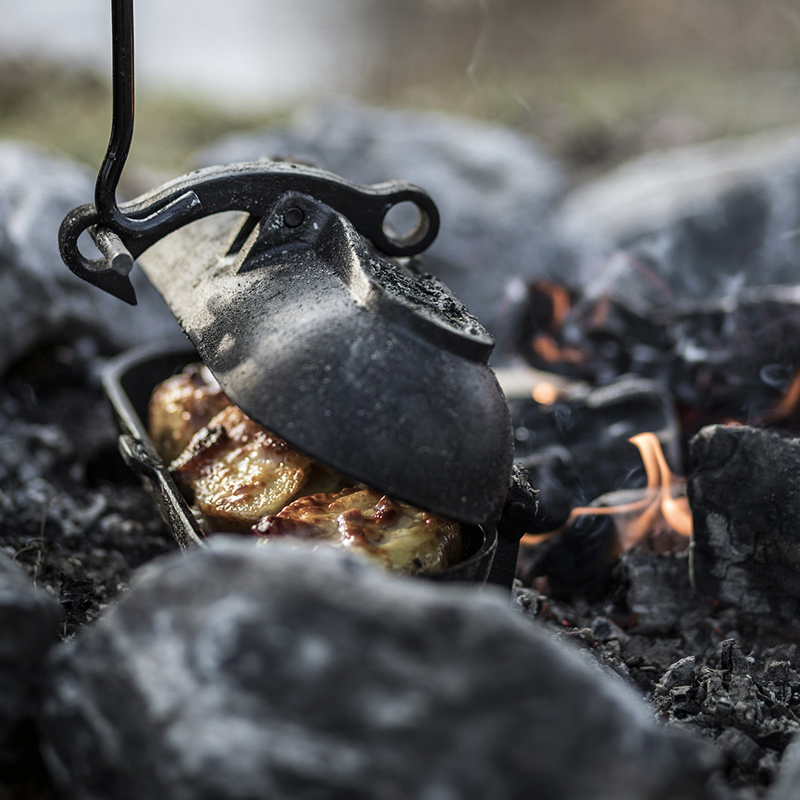 Met een inhoud van 1,8 liter biedt de oven genoeg ruimte voor meerdere porties. De geïntegreerde ventilatieopeningen en het slimme ontwerp zorgen voor optimale luchtcirculatie. De oven kan direct in de kolen worden geplaatst of op een grillrooster boven een kampvuur. Door de stevige draaggreep is hij bovendien makkelijk te hanteren, ook met handschoenen.