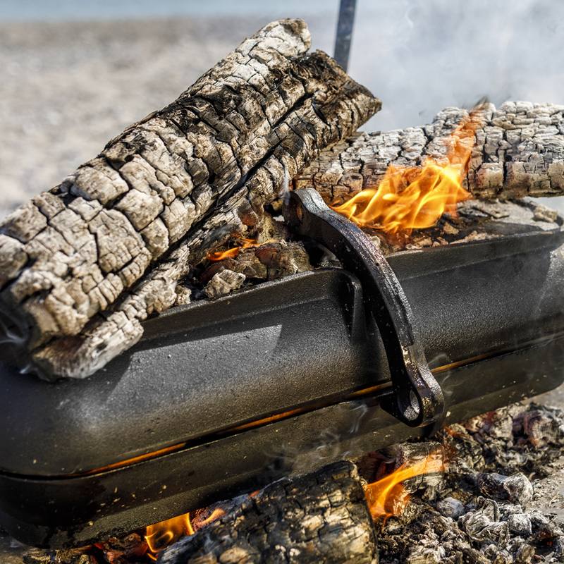 - Geschikt voor direct vuur en kolen: Plaatsbaar in hete as of boven open vuur