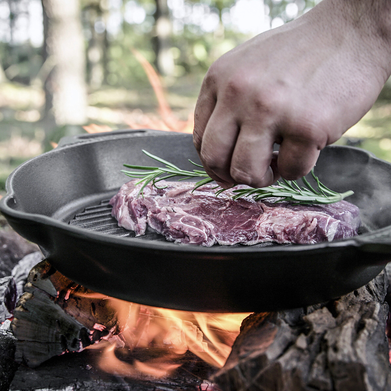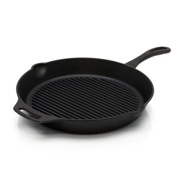 De Petromax Gietijzeren Grill Skillet 35 cm is een krachtige pan met geribbelde bodem, ideaal voor grote porties vlees, vis of groenten. Dankzij de gietijzeren constructie en ruime inhoud grilt u moeiteloos voor meerdere personen met perfecte resultaten.