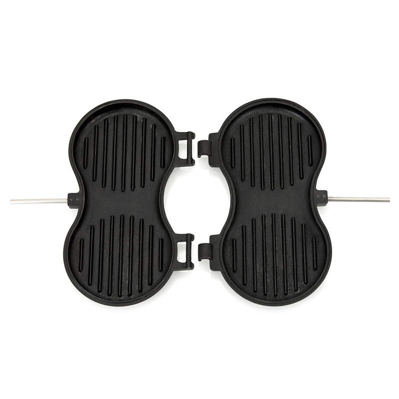 Na gebruik kunnen de twee helften eenvoudig van elkaar worden gehaald voor grondige reiniging. Het gietijzer is voorbehandeld met een natuurlijke anti-aanbaklaag, waardoor het onderhoud minimaal is en het ijzer klaar is voor direct gebruik.
