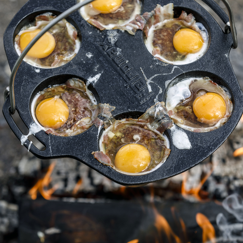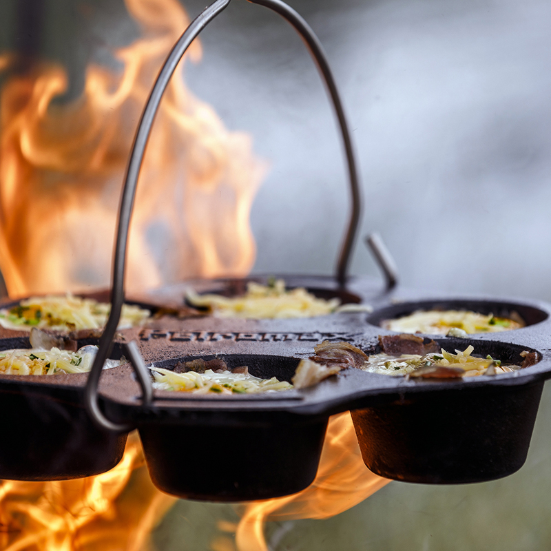 De vorm is geschikt voor gebruik op open vuur, in de Dutch oven of thuis in de oven. Met een totale inhoud van 0,78 liter en per muffinvorm 0,13 liter is hij ideaal voor hartige of zoete creaties zoals muffins, cupcakes of kleine broodjes. De natuurlijke antiaanbaklaag verbetert met elk gebruik, wat zorgt voor jarenlang bakplezier.
