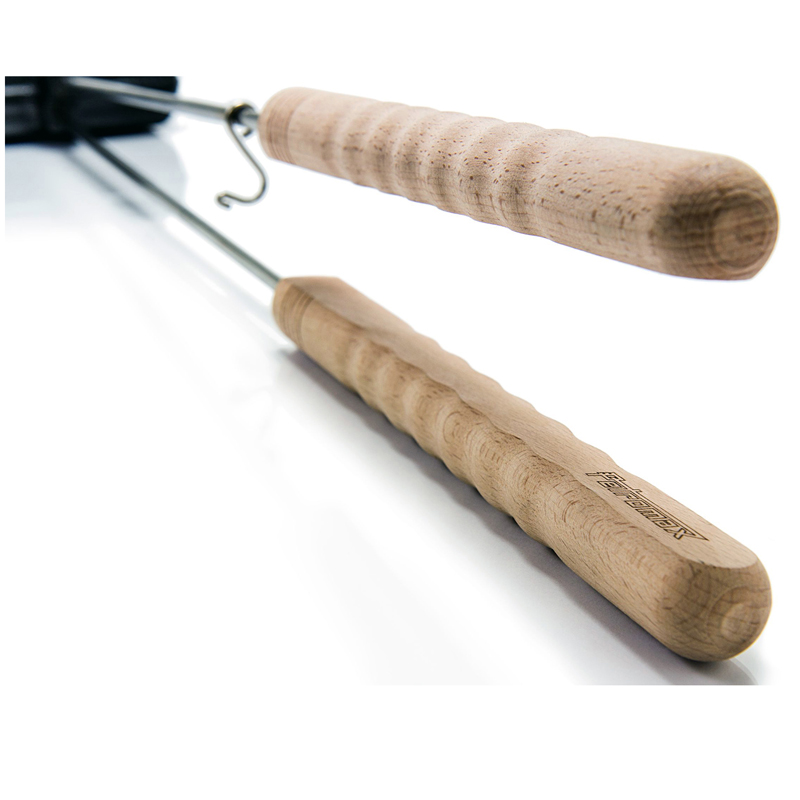 • Lange steel met houten handvatten: Veilig gebruik boven kampvuur of barbecue