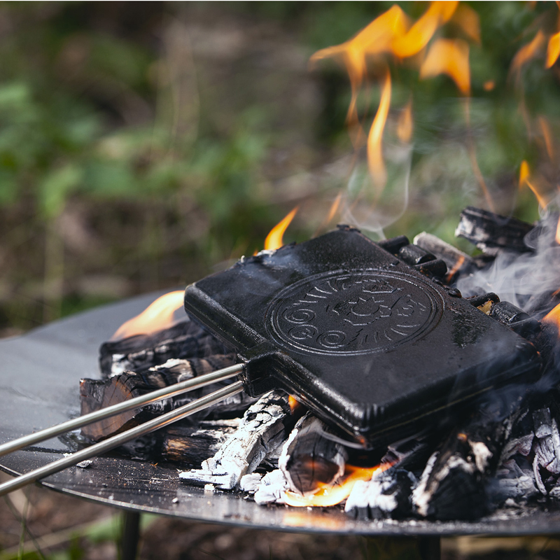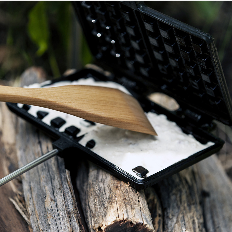 De gietijzeren platen warmen gelijkmatig op en zorgen voor een knapperig bakresultaat met een authentieke wafeltextuur. Dankzij de natuurlijke antiaanbaklaag wordt het ijzer steeds beter in gebruik. Perfect voor kampeertrips, bushcraft, tuinfeesten of gewoon voor wie buiten van zoetigheid wil genieten.
