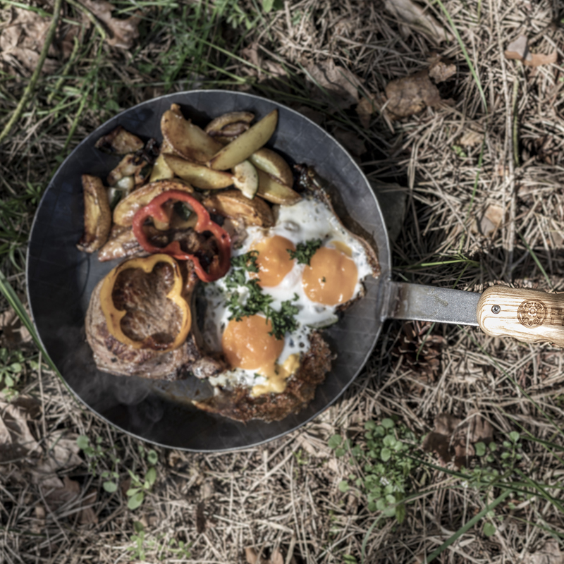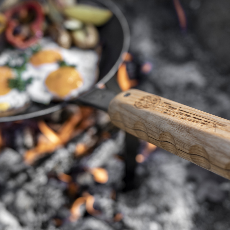 Dankzij de ergonomische vorm en eenvoudige bevestiging biedt dit handvat meer controle en comfort, of u nu boven open vuur of in de keuken werkt. Het is bestand tegen hoge temperaturen en geeft uw pan een rustieke, authentieke uitstraling.