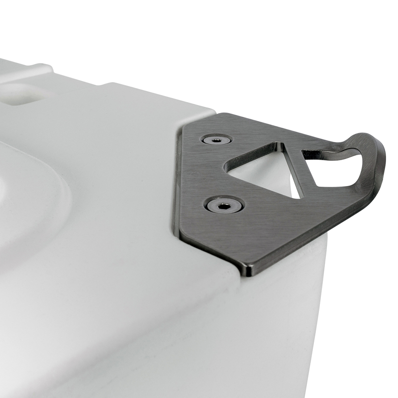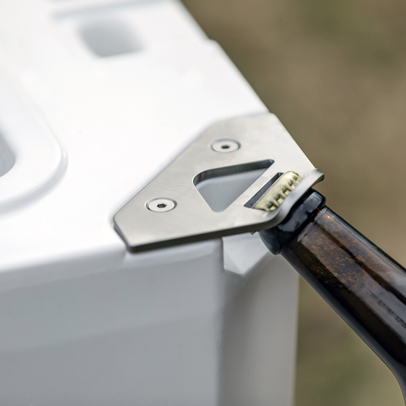De montage is eenvoudig: u bevestigt de plaat aan de zijkant van de koelbox, waar hij stevig vastzit en altijd binnen handbereik blijft. Of u nu uw inhoud wilt beveiligen tegen ongewenste toegang of snel een koud drankje wilt openen, deze accessoire biedt uitkomst.