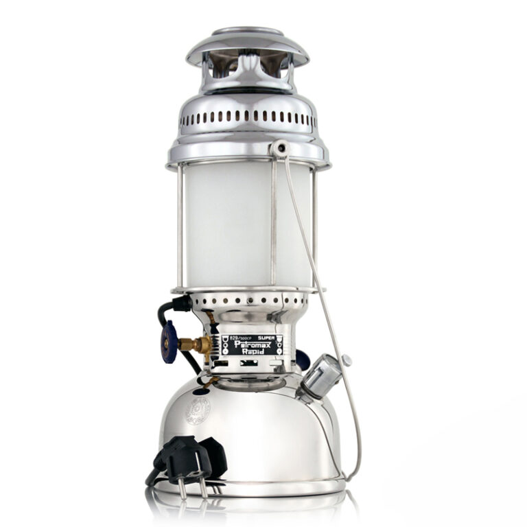 De Petromax Lantaarn Staand HK500 Chroom is een klassieker onder de hogedruklampen en biedt een krachtige lichtbron voor diverse toepassingen. Dankzij het unieke verbrandingssysteem, waarbij petroleum onder druk wordt verneveld en ontstoken in een gloeikous, levert deze lamp een helder en warm licht van meer dan 400 watt. Het verchroomde messing ontwerp zorgt niet alleen voor een elegante uitstraling, maar biedt ook uitstekende bescherming tegen corrosie en weersinvloeden.