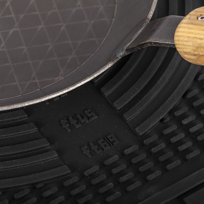 De Petromax Siliconemat is dé bescherming voor uw werkoppervlak tijdens intensief koken met gietijzeren of stalen accessoires. Door het grote, hittebestendige oppervlak en het stevige antislipdesign biedt deze mat comfort, veiligheid en hygiëne – zowel buiten als in de keuken.