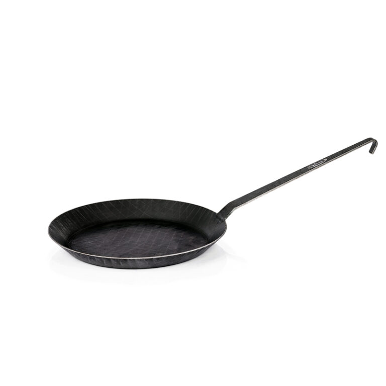 Met een diameter van 32 cm en een hoge rand van 15 cm biedt deze pan volop ruimte voor grote porties en maaltijden met vocht of saus. Het smeedijzer ontwikkelt na verloop van tijd een natuurlijke antiaanbaklaag, waardoor de prestaties bij elk gebruik verbeteren. Of u nu boven een kampvuur kookt of op een fornuis, deze pan levert keer op keer topprestaties.