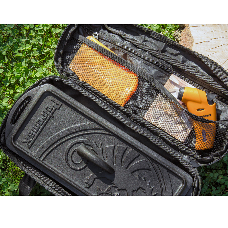 Dankzij het nauwsluitende ontwerp en de robuuste ritssluiting blijft de pan goed op zijn plek. De extra handgrepen zorgen voor comfortabel dragen, terwijl het compacte formaat het eenvoudig maakt om de tas in uw uitrusting te integreren. Zo blijft uw broodpan schoon, beschermd en klaar voor gebruik bij elk buitenkookavontuur.