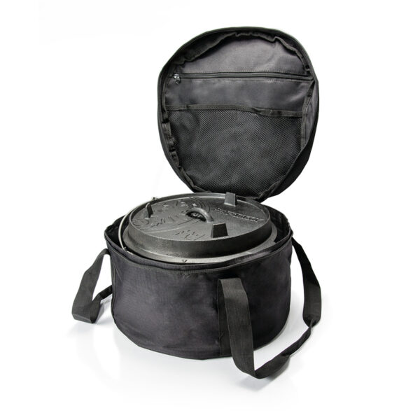 Met deze transporttas bescherm je je Dutch Oven tegen beschadigingen tijdens transport en opslag. De tas houdt je bagage schoon van roet en vet en biedt extra ruimte voor accessoires. Een must-have voor elke buitenkok die zijn uitrusting veilig en georganiseerd wil houden.