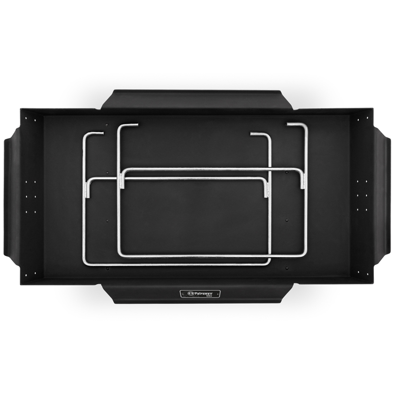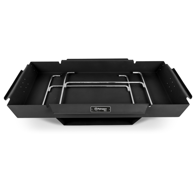 Onder de vuurtrog bevindt zich een geïntegreerde baklade met afmetingen van 11,4 x 46,5 x 35,5 cm, ideaal voor het warmhouden van gerechten of het gratineren van bijvoorbeeld aardappelschotels. De stevige poten zijn eenvoudig te demonteren zonder gereedschap, waardoor de vuurtrog compact kan worden opgeborgen en gemakkelijk te vervoeren is.