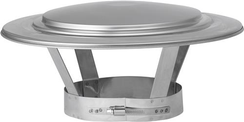 De Regenkap Ø200 mm – Enkelwandig RVS wordt boven op het rookkanaal geplaatst om te voorkomen dat regenwater, bladeren of vuil in het kanaal terechtkomen. Het robuuste RVS zorgt ervoor dat de kap bestand is tegen alle weersomstandigheden en hoge temperaturen.