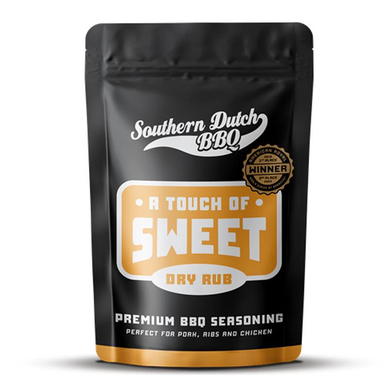 De Southern Dutch A Touch of Sweet – 100 gram is een bekroonde BBQ-rub ontwikkeld door het Nederlandse team Southern Dutch BBQ. Deze zoete allround rub werd uitgeroepen tot Beste Mild Rub tijdens de prestigieuze American Royal Rub Contest. Met zijn uitgebalanceerde mix van rietsuiker, paprika, peper en subtiele specerijen is hij ideaal voor kip, varken, ribs en zelfs rundvlees.