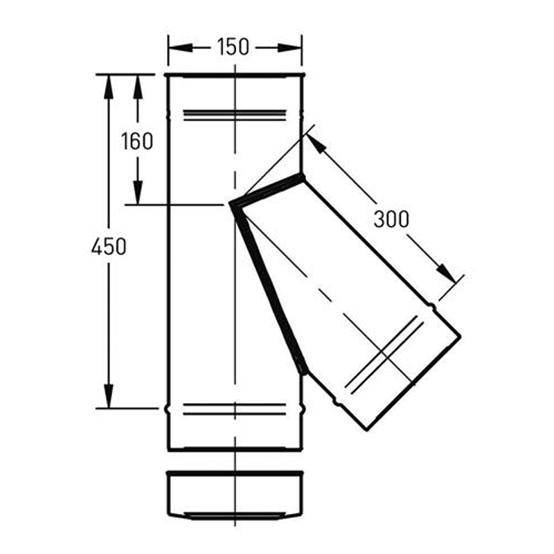 Dit T-stuk wordt vaak gebruikt om een zijtak van het rookkanaal aan te sluiten of om een reinigingspunt te creëren. Dankzij de 135°-hoek blijft de doorstroming van rookgassen vloeiend.