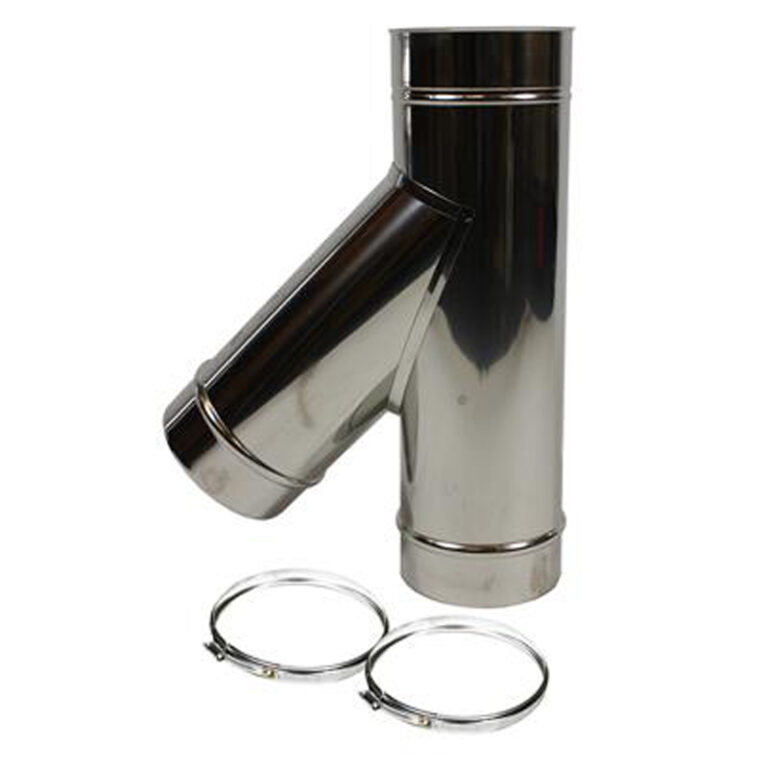 Het T-stuk Ø200 mm – 135° (45°) met deksel – Enkelwandig RVS wordt gebruikt om een extra aansluiting te maken in een rookkanaal. De schuine hoek van 135° zorgt voor een betere rookdoorstroming, terwijl het deksel toegang geeft voor inspectie en reiniging.