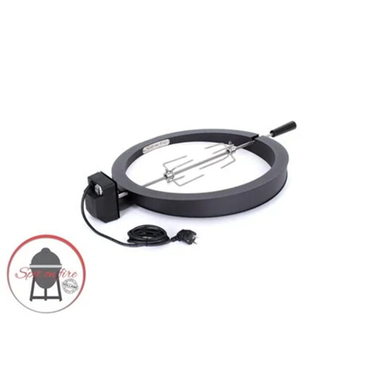 Met een indrukwekkende binnendiameter van 53,5 cm en een buitendiameter van 60 cm past deze rotisserie op grote modellen kamado’s die extra ruimte vereisen. De stijlvolle zwarte afwerking maakt het systeem niet alleen functioneel, maar ook visueel aantrekkelijk. Robuust, duurzaam en ontworpen voor intensief gebruik: de ideale keuze voor de fanatieke buitenkok.
