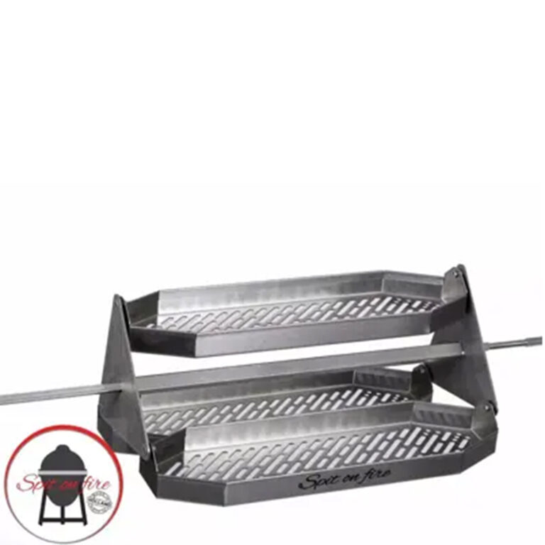 De Spit on Fire Carrousel Medium biedt een praktische oplossing voor wie efficiënt meerdere kleine gerechten tegelijk wil bereiden op een spit. Dankzij het roterende ontwerp garen spiesen en bakjes gelijkmatig, wat resulteert in smaakvolle en sappige bereidingen – van vlees tot groenten en meer.