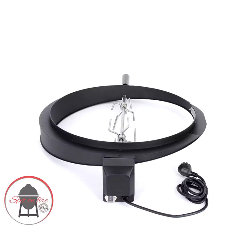 De Spit on Fire Large – 21 inch is dé oplossing voor het bereiden van grote stukken vlees of volledige gerechten op uw kamado. Dankzij de ruime afmetingen en de stevige metalen constructie biedt dit spit-systeem optimale stabiliteit en een gelijkmatige garing – van langzaam gegaarde kip tot smaakvolle rollades.