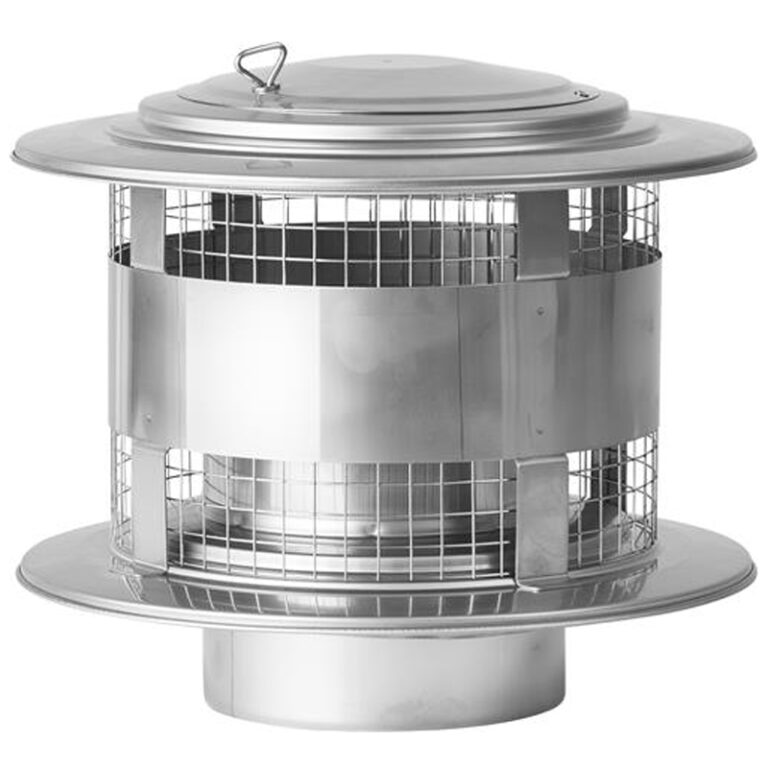 De Trekkap Ø150 mm met gaas en veegluik – Enkelwandig RVS voorkomt dat vogels en vuil in het rookkanaal terechtkomen, terwijl het veegluik directe toegang biedt voor reiniging. Tegelijkertijd zorgt de kap voor een verbeterde trek.